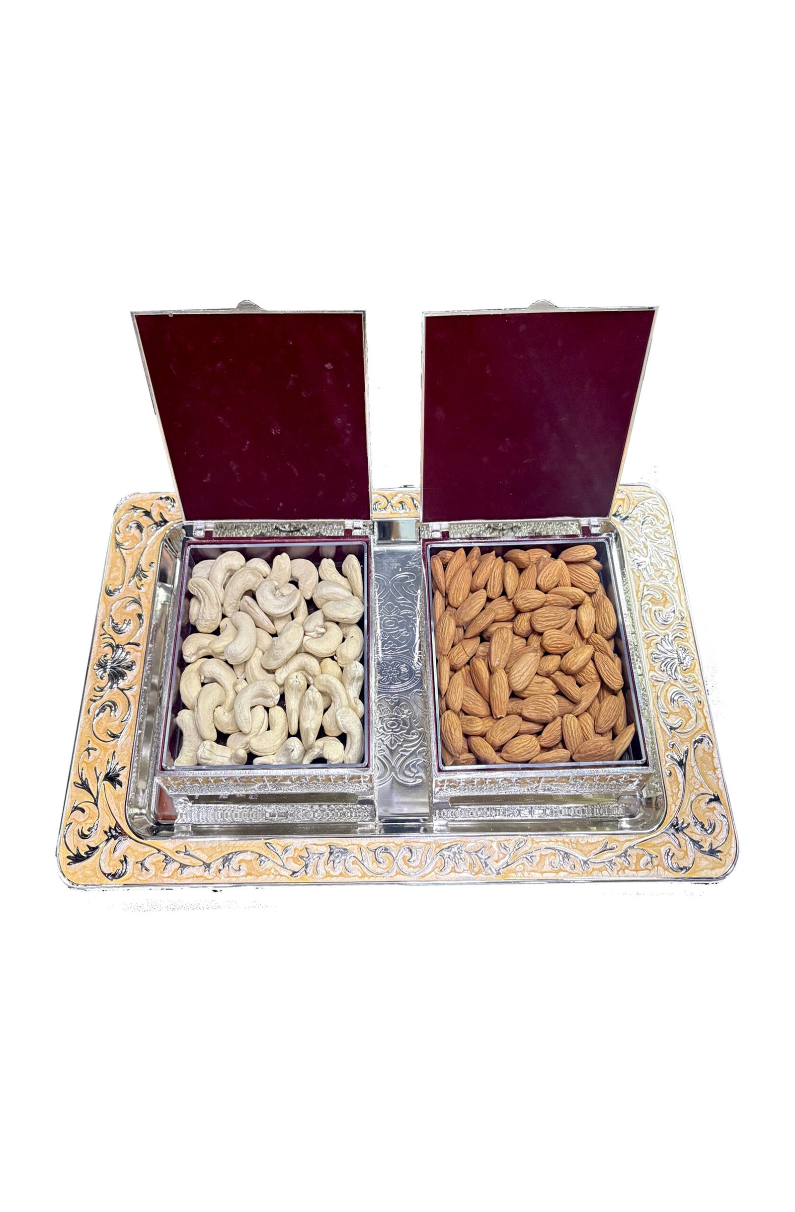 This premium gift box contains a carefully curated selection of finest dry fruits including Almonds (Badam), Cashews (Kaju), each handpicked for superior taste, freshness, and nutritional value.