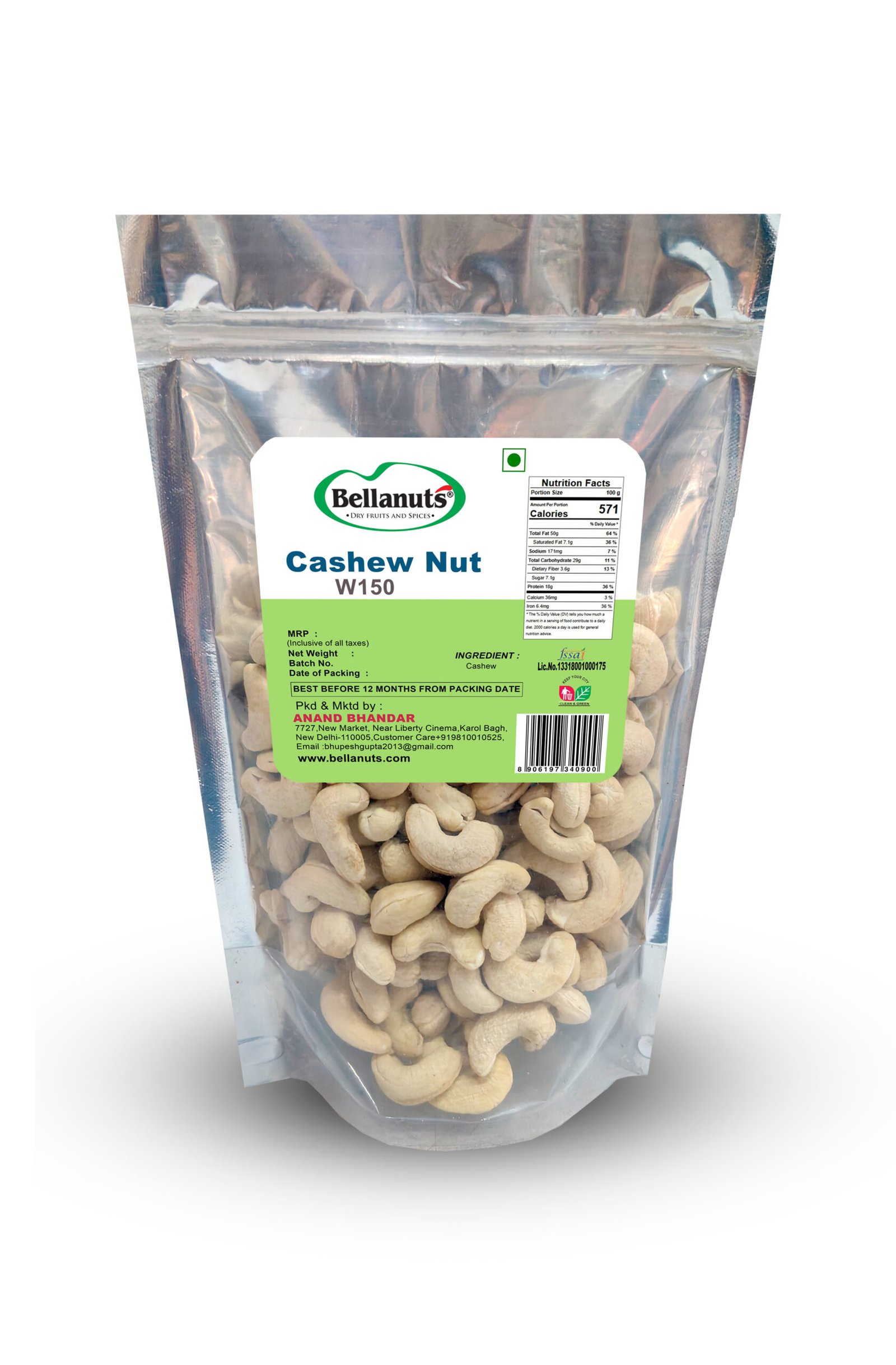 Bellanuts Cashew Nut Grade W150 Premium Whole Cashew