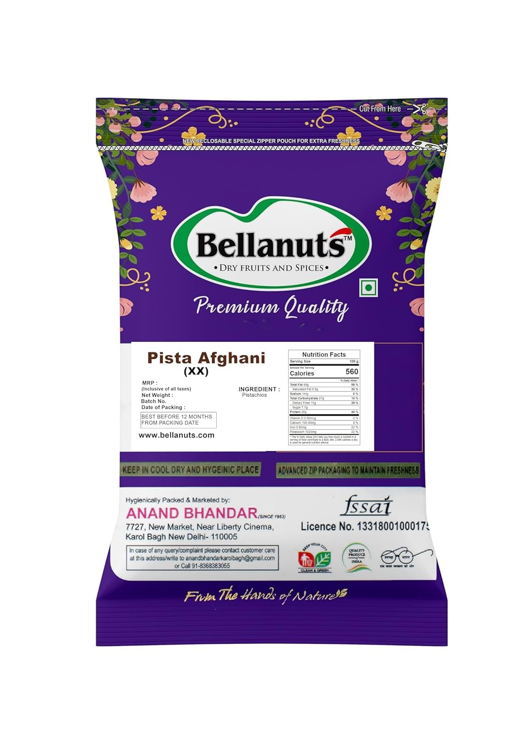 Bellanuts Premium Irani Pistachios XX Grade,